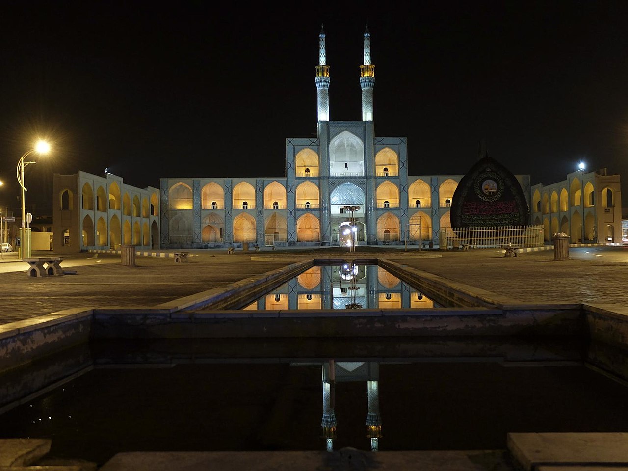 affacciano ampie arcate, vetrate di legno istoriate, due badgir e un ampio iwan, il tipico spazio rettangolare
