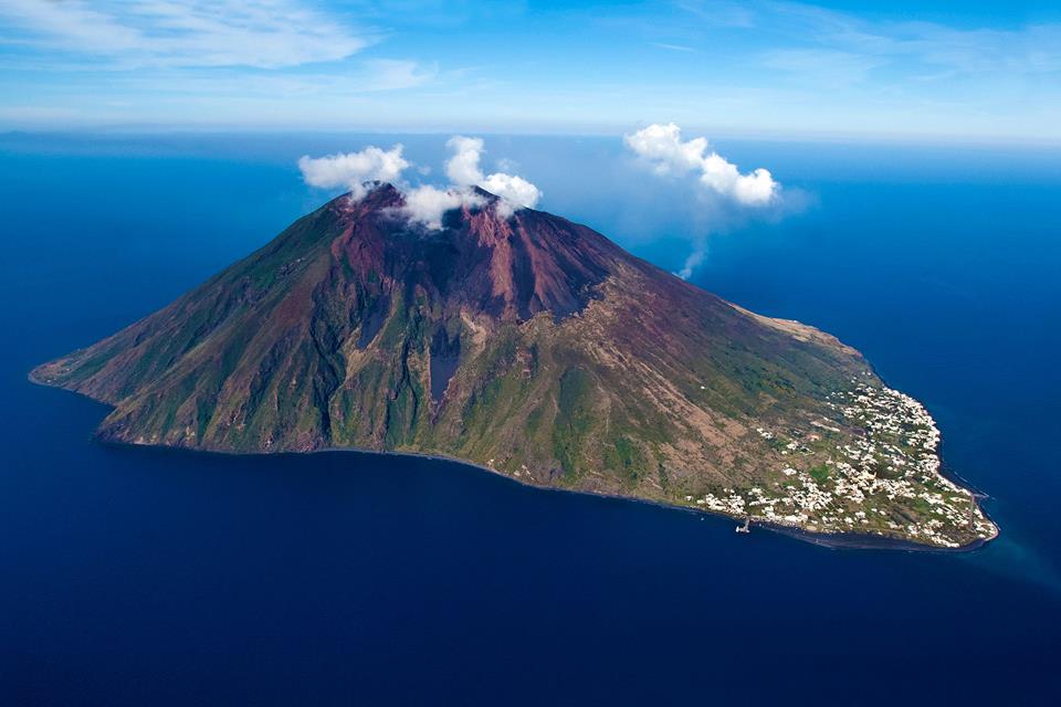 cono vulcanico appartato in un mare blu intensissimo. Uscendo dal porto