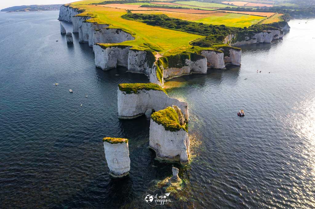 a Old Harry Rocks. Le rocce lungo la costa risalgono al Triassico,